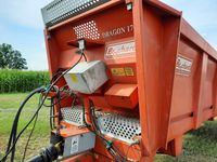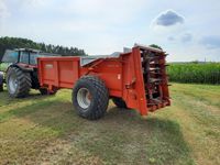 Rozrzutnik obornika firmy BROCHARD, model DRAGON 1700 wyposażony w pionowe adaptery i hydrauliczny posów taśmy.
