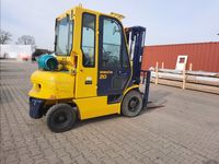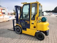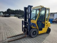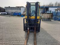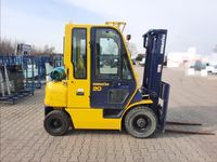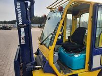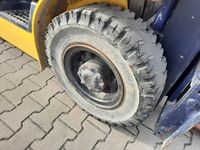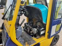 Wózek widłowy spalinowy gazowy KOMATSU FG25HT-12 Udźwig: 2000 kg / 2500 kg Wysokość podnoszenia 3,5 m / 4 m Silnik: NISSAN H25 (4 cylindry) 44 kW / 60 KM Wyposażenie dodatkowe: - ogrzewanie / nawiewy - wycieraczki, - światła drogowe, - rewers w manetce, - CB Radio, - książki serwisów. Inne informacje: - sprawny technicznie Wymiary: - długość wideł 115 cm, - długość wózka 250 cm, - wysokość złozonego masztu 214 cm, - wysokość wózka 220 cm, - szerokość 115 cm. Masa własna: 3550 kg