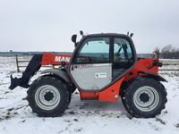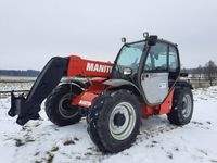 Ładowarka teleskopowa kołowa MANITOU MT 732 Wysięg: 7 m Udźwig: 3200 kg (3,2 t) Przebieg: 7386 mth Silnik: PERKINS 84 KM Masa własna: 7250 kg Rok produkcji: 2008 Stan: sprawna technicznie Wymiary (tak jak stoi): - 420 cm x 225 cm x 220 cm (h)