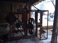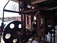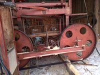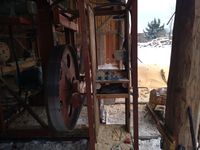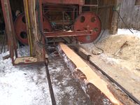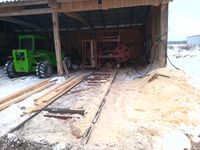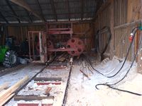 Trak szerokotaśmowy / szeroko taśmowy Słowackiej produkcji + torowisko 12 m + + mocowania W zestawie: - taśma 12,5 cm x 740 cm, Wymiary: - średnica kół 115 cm, - szerokość pomiędzy szynami 136 cm, - maksymalna średnica drewna do cięcia to 125 cm, Wymiary złozonego traka bez torowiska: - 300 cm x 275 cm x 258 cm (h) Masa własna (bez szyn): 2500 kg Wyposażenie: - regulacja obrotów, - jazda wolna / szybka, - posuwy góra / dół, - zasilanie 400 V / 18,5 kW Stan: trak sprawny technicznie i gotowy do pracy Możliwość dokupienia agregatu prądotwórczego 60 kW z silnikiem diesla PERKINS 6 cylindrów oraz prądnicą bezszczotkową po regeneracji za 15 000 zł